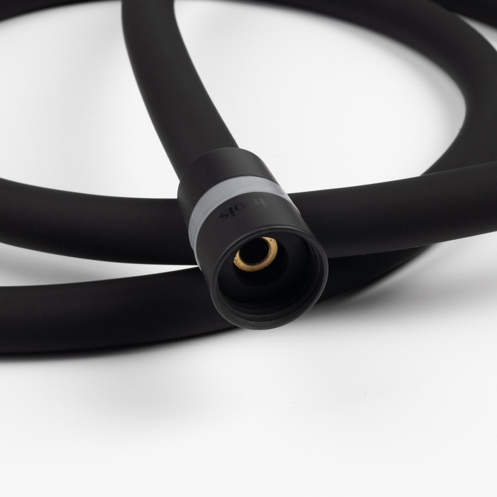 Ультрагибкий шланг с оболочкой из термостойкого силикона для ручных душевых леек. Универсальное соединение G ½” позволяет использовать с любой черной лейкой. Приятный на ощупь: очень гладкий и бархатистый.