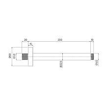 Черный матовый потолочный кронштейн для верхней душевой лейки. Цилиндрическая форма, длина 200 мм.