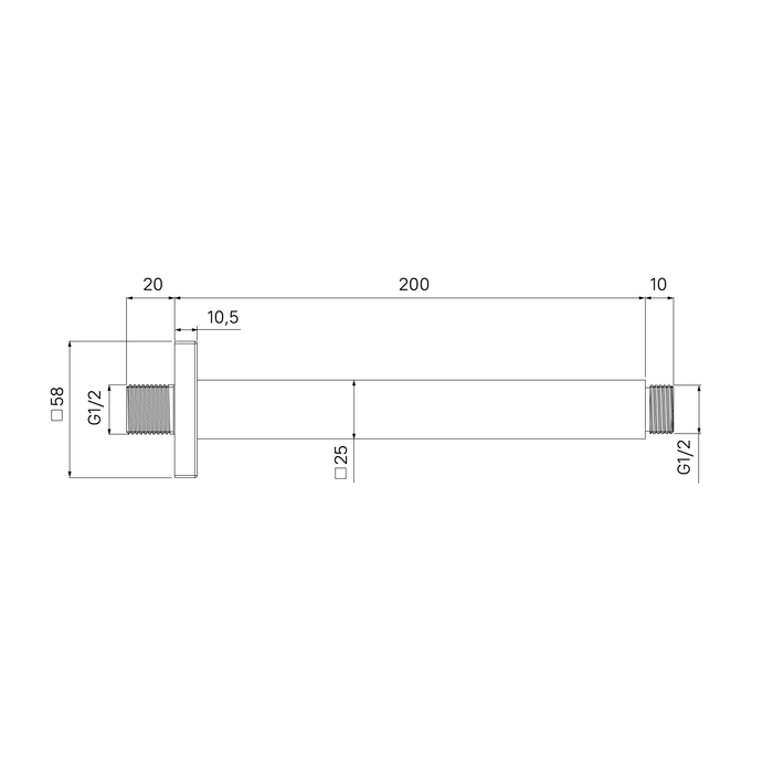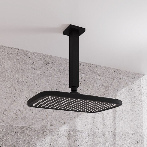 Черный матовый потолочный кронштейн для верхней душевой лейки. Квадратные формы, длина 200 мм.