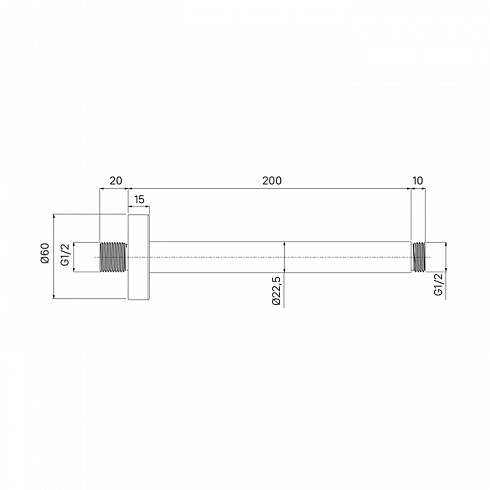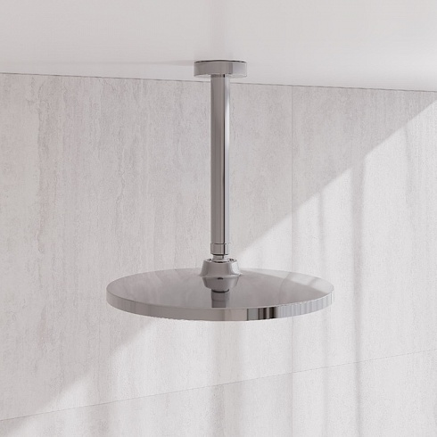 Хромированный потолочный кронштейн для верхней душевой лейки. Цилиндрическая форма, длина 200 мм.