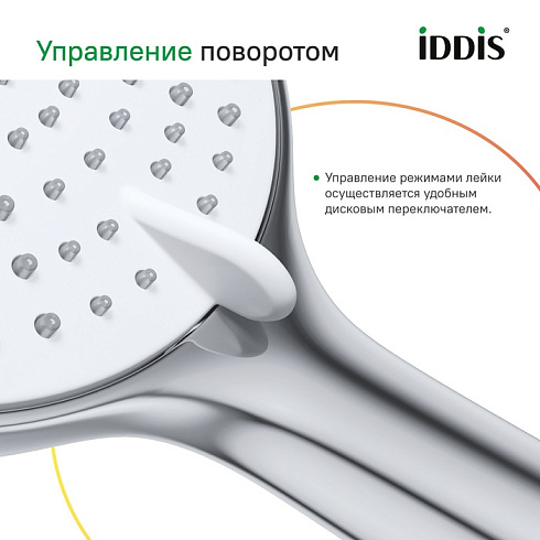 • За лейкой IDDIS® ухаживать очень просто: мягкие силиконовые форсунки мгновенно очищаются от загрязнений и известкового налета – достаточно провести по ним пальцем.