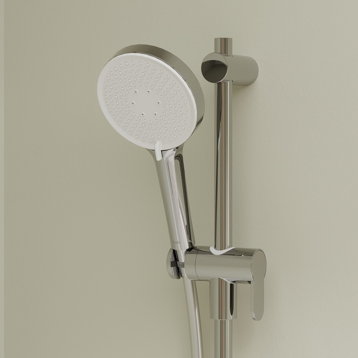 Лейка проста в уходе: мягкие силиконовые форсунки легко очищаются от загрязнений и известкового налета – достаточно провести по ним пальцем.