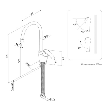 • Гладкий гибкий шланг из ПВХ оптимальной длины 1,5 м с силиконовым кольцом на гайке для надежной фиксации в держателе, сеткой-фильтром для защиты от засорения. Без перекручивания.