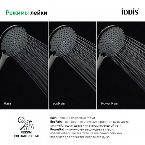 • За лейкой IDDIS® ухаживать очень просто: мягкие силиконовые форсунки мгновенно очищаются от загрязнений и известкового налета – достаточно провести по ним пальцем.