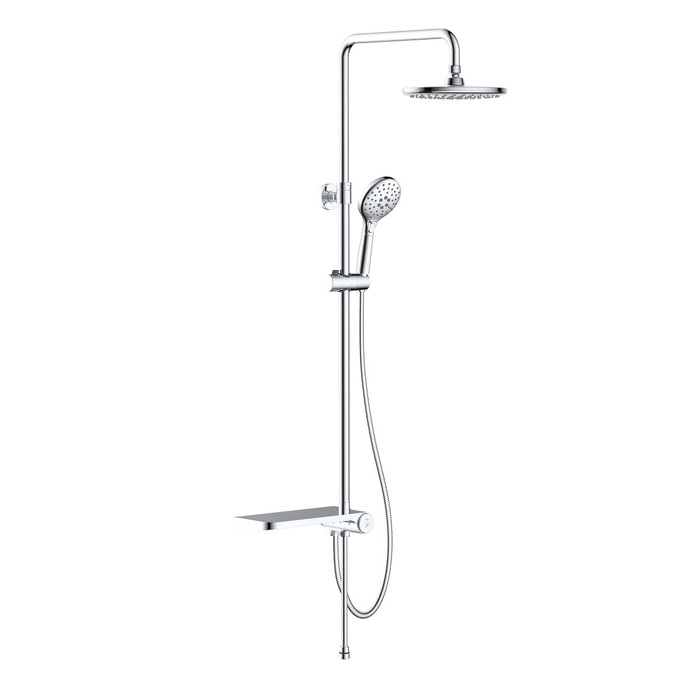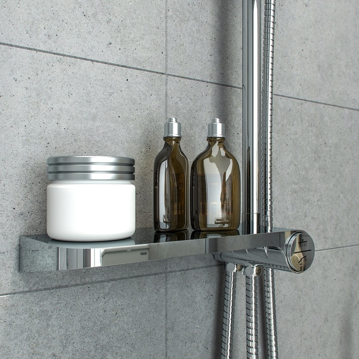 Аксессуары для душа Ray выделяются тонким балансом плавных линий и строгой функциональной формой изделий, что придает коллекции удивительно гармоничный и завершенный облик. Регулируемая высота стойки душевого гарнитура Ray (от 850 до 1150 мм) позволяет принимать душ с комфортом даже самым высоким. Изделие оснащено полочкой с кнопочным дивертором – на ней легко поместятся любимые косметические средства. В комплекте два шланга (1,5 и 0,5 м) с защитой от перекручивания.