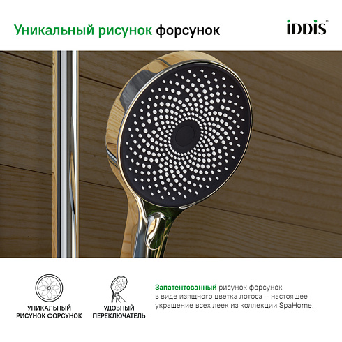 • Хромированное покрытие ручной лейки IDDIS® устойчиво к коррозии, появлению царапин, сколов и потускнению. На протяжении многих лет они будут выглядеть как новые.