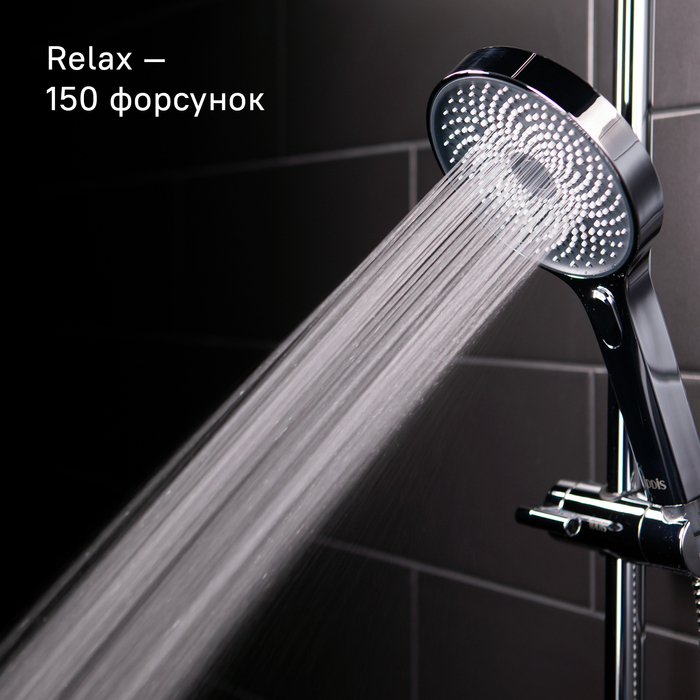 Душевой гарнитур из коллекции SpaHome дарит расслабляющий эффект настоящего домашнего спа благодаря большому диаметру леек и большому количеству форсунок (417 шт. у верхней лейки). Многочисленные форсунки с микроотверстиями распределяют поток воды равномерными и мягкими струями. Кнопочный переключатель на ручной лейке позволяет комфортно управлять 3 режимами, задействующими разное количество форсунок (150, 174 и 324 шт.), меняя интенсивность и объем потока воды в лейке. Благодаря приятному массажному эффекту процесс принятия душа превращается в настоящее наслаждение. Рисунок форсунок в виде изящного цветка лотоса является настоящим украшением всех леек из коллекции SpaHome. В комплекте два ПВХ-шланга (1,5 и 0,6 м) в оплетке из нержавеющей стали.