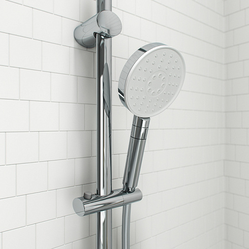 Плавный изящный силуэт и воздушные белые вставки выделяют двухцветную душевую лейку Swipe среди других. Разнообразие режимов (Rain, Massage, Rain&Massage) позволяет подбирать вариант под любое настроение: и для бодрящего утра, и для расслабляющего вечера. Режимы легко переключаются с помощью неприметного слайдера на ручке – достаточно всего одного движения. Лейка Swipe по праву может считаться одной из самых крупных душевых леек IDDIS®. Широкий водный купол делает процесс принятия душа более расслабляющим и приятным благодаря большому диаметру диска лейки (120 мм).