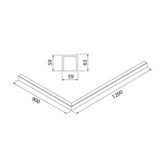 • Сечение профиля — 63х59 мм, подходит к душевому ограждению Slide в размере 1200х900 мм (арт. SLI6BS2i23).