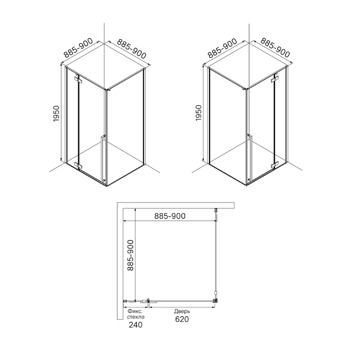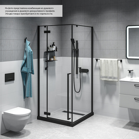 Душевое ограждение для ванной комнаты Slide стильного черного цвета – изящное решение для оформления ниши под душевую зону для тех, кто выбирает функциональный минимализм и чистые формы. Ограждение имеет удобный регулируемый размер 885-900х885-900х1950 мм, позволяющий сгладить неровность стен до 15 мм. Эргономичное решение для компактных пространств — установка двери возможна как с правой, так и с левой стороны.