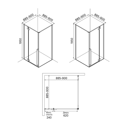Душевое ограждение для ванной комнаты Slide со стильным глянцевым алюминиевым профилем – изящное решение для оформления ниши под душевую зону для тех, кто выбирает функциональный минимализм и чистые формы. Ограждение имеет удобный регулируемый размер 885-900х885-900х1950 мм, позволяющий сгладить неровность стен до 15 мм. Эргономичное решение для компактных пространств — установка двери возможна как с правой, так и с левой стороны.