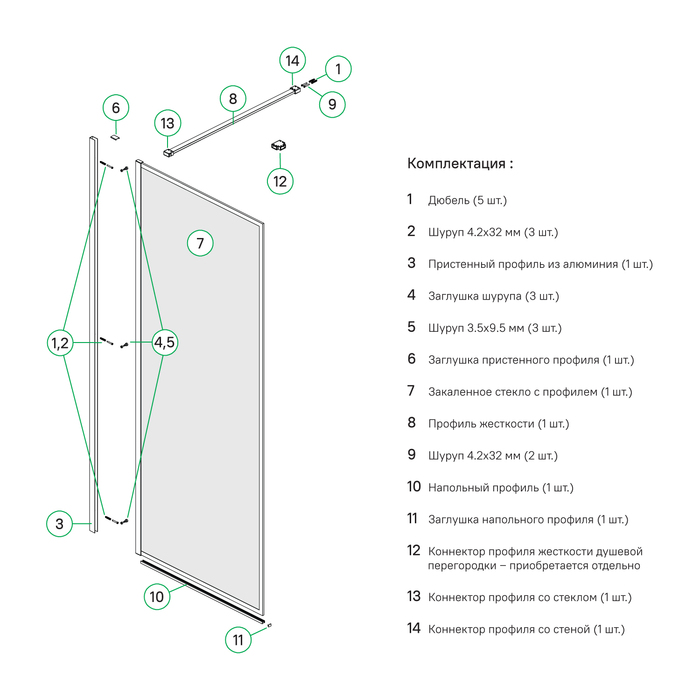 • Перегородка Walk In имеет регулируемый размер 1080-1100х1950 мм, позволяющий сгладить неровность стен до 20 мм.
