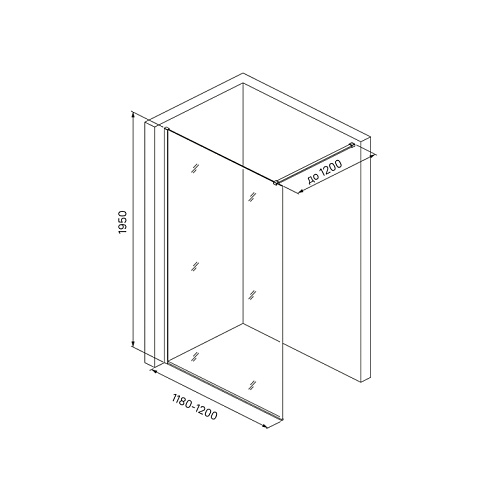 • Перегородка Walk In имеет регулируемый размер 1180-1200х1950 мм, позволяющий сгладить неровность стен до 20 мм.
