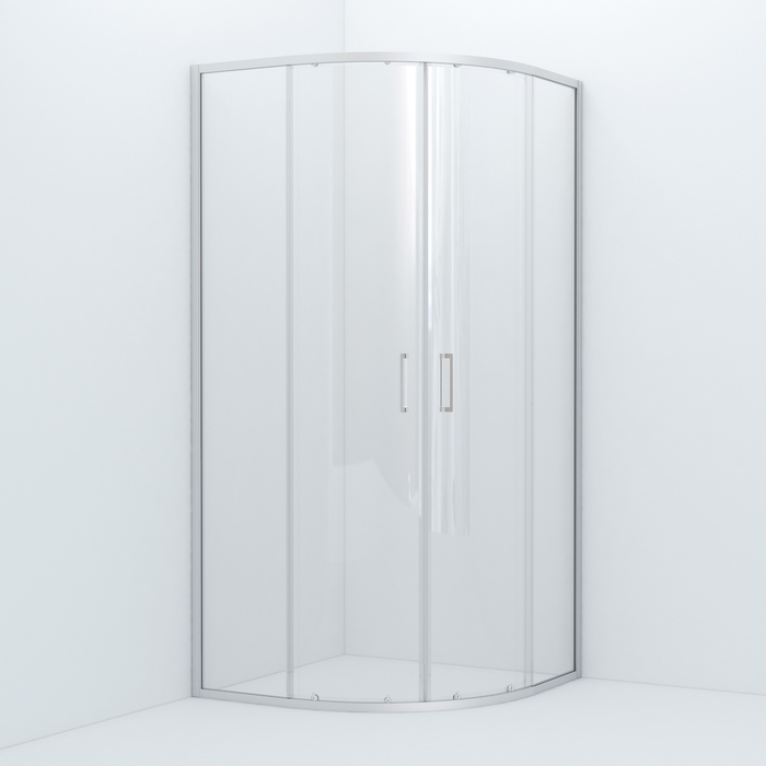 Душевое ограждение для ванной комнаты Zodiac в форме четверти круга с регулируемым размером 885-900х885-900х1950 мм, что позволяет сгладить неровности стен до 15 мм.