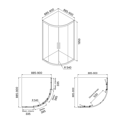 - Размер изделия, мм. 900x900x1950