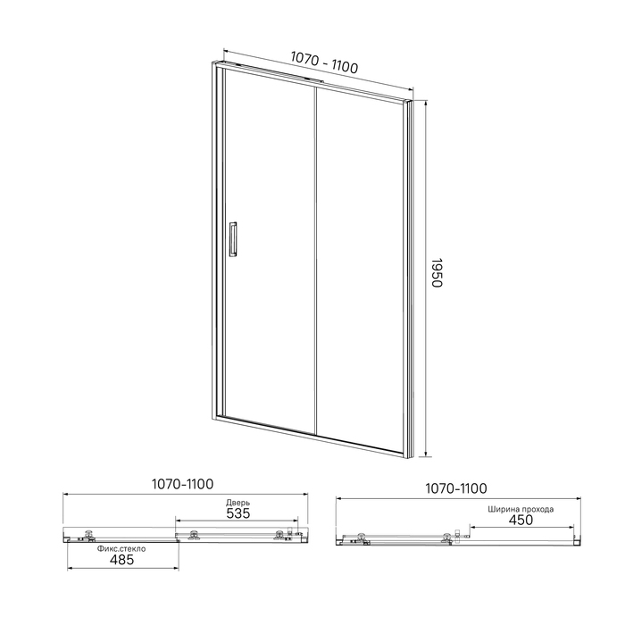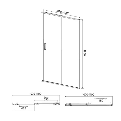 Душевая дверь Zodiac с глянцевым алюминиевым профилем с регулируемым размером 1070-1100х1950 мм предназначена для оформления ниши под душевую зону в ванной комнате. Установка двери возможна как с правой, так и с левой стороны.