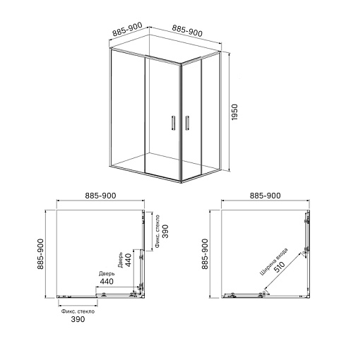 - Размер изделия, мм. 900x900x1950