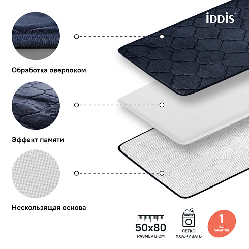 Удивительно мягкий коврик для ванной цвета ночного неба с рельефным узором и эффектом памяти. Запоминающая пена премиум-класса очень эластична и принимает форму стопы, обеспечивая ее комфорт и поддержку. Этот массажный эффект помогает сохранить ощущение расслабленности после душа. Коврик подойдет для ванной и туалета.