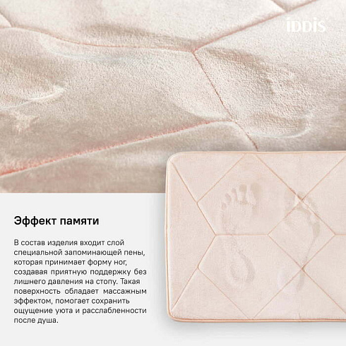 Удивительно мягкий коврик для ванной розового цвета с рельефным ромбовидным узором и эффектом памяти. Запоминающая пена премиум-класса очень эластична и принимает форму стопы, обеспечивая ее комфорт и поддержку. Этот массажный эффект помогает сохранить ощущение расслабленности после душа. Коврик подойдет для ванной и туалета.