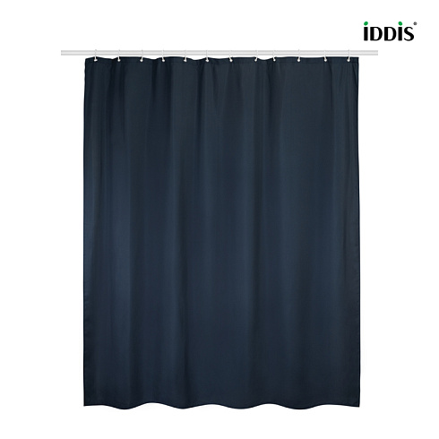 Однотонная текстильная штора для ванной темно-синего цвета с приятной на ощупь фактурой, бархатистой, как кожа персика. Напоминает обычные шторы и соответствует актуальному тренду оформления ванной как уютной жилой комнаты.