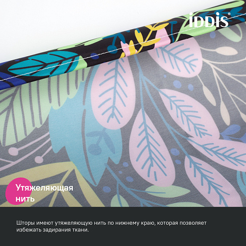 • Штора имеет утяжеляющую нить по нижнему краю, которая позволяет избежать задирания ткани.