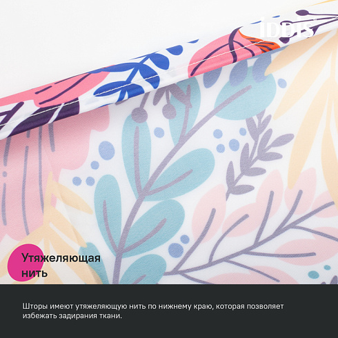 • Штора имеет утяжеляющую нить по нижнему краю, которая позволяет избежать задирания ткани.