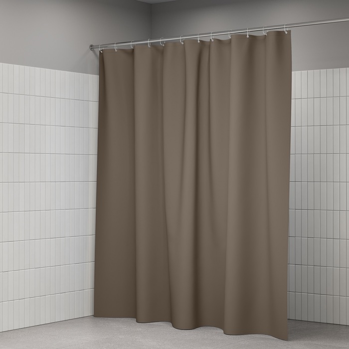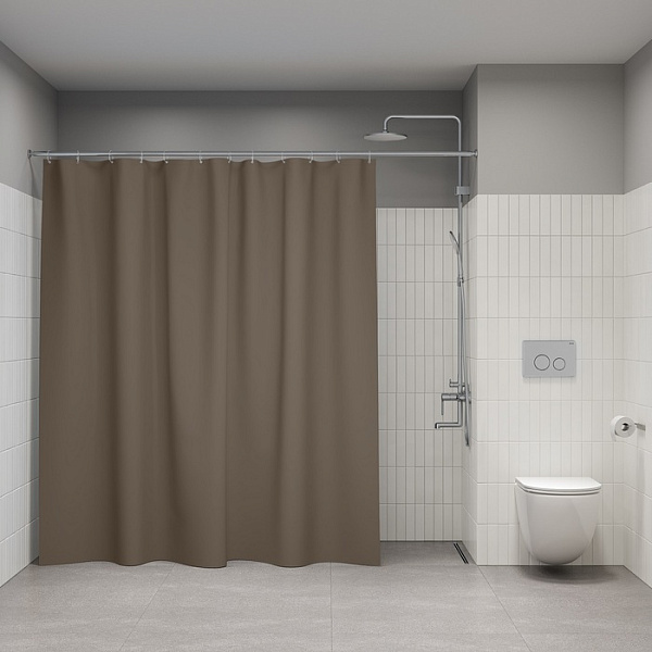 Текстильная штора для ванной в теплом карамельном оттенке подойдет для интерьера в светлых и теплых тонах. Увеличенный размер – 200х240 см.