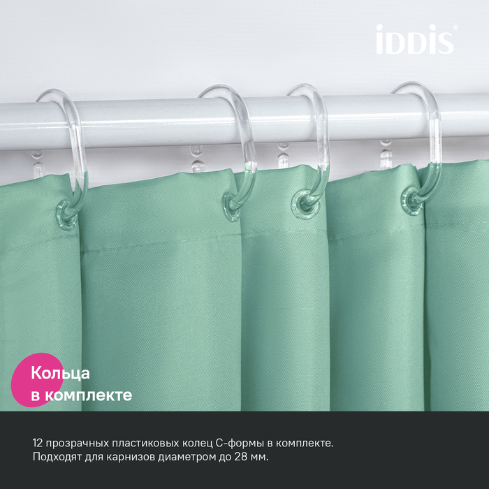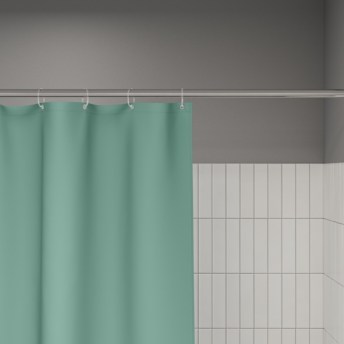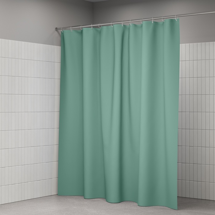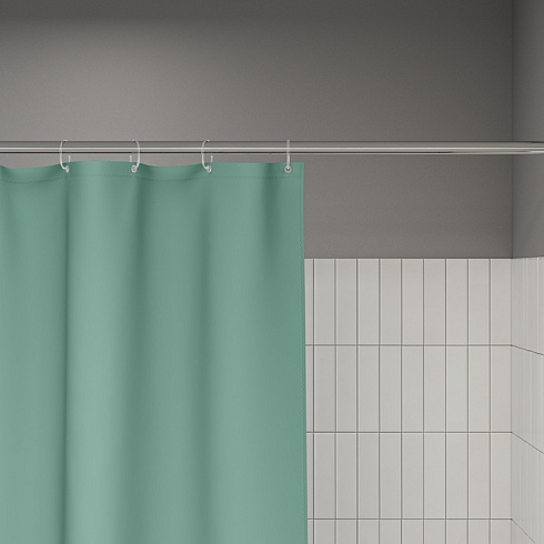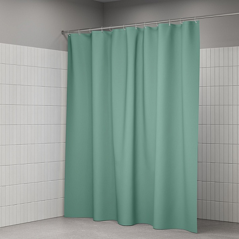 Текстильная штора для ванной в трендовом зеленом оттенке будет гармонично смотреться в любом современном интерьере. Увеличенный размер – 200х240 см.