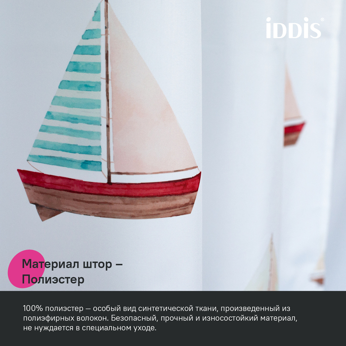 Текстильная штора для ванной белого цвета в морском стиле с принтом из цветных корабликов добавит нотку отпускного настроения и впишется в любой интерьер.