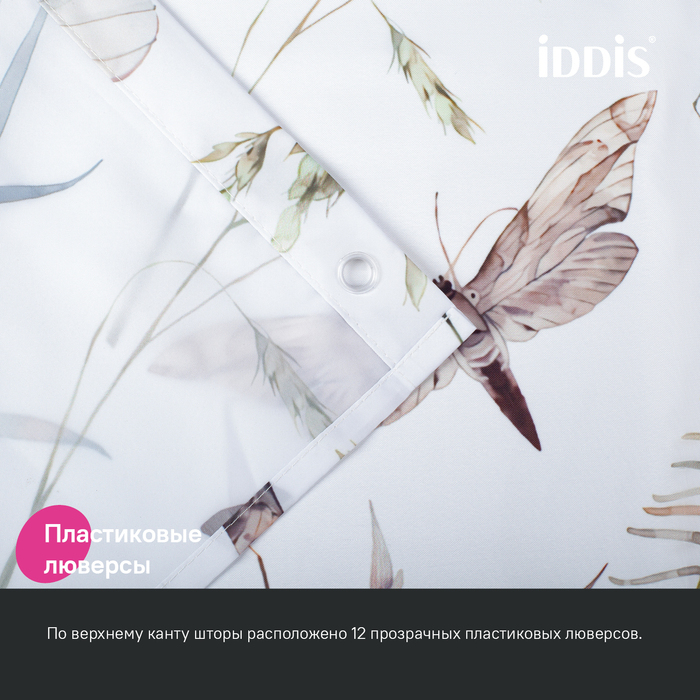 Текстильная штора для ванной белого цвета с непринужденным принтом с полевыми бабочками. Штора освежит пространство и привнесет в него легкое настроение.