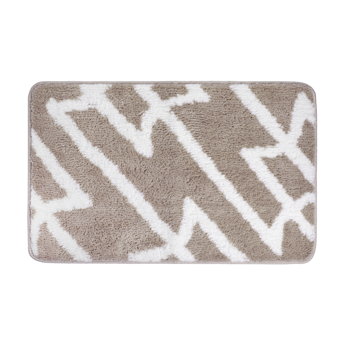 Мягкий коврик для ванной цвета мокко с белым узором имеет плотный высокий ворс (1,7 см), очень приятный на ощупь. Ворс из микрофибры отлично держит форму, легко чистится и быстро сохнет. Коврик подойдет для ванной и туалета.