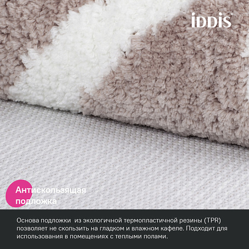 • Этот коврик в ванную противоскользящий: основа из экологичной термопластичной резины (TPR) позволяет не скользить на гладком и влажном кафеле. Подходит для использования в помещениях с теплыми полами.