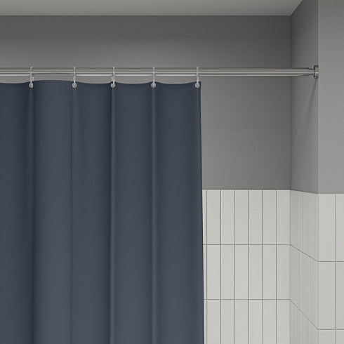Текстильная штора для ванной стильного графитового цвета будет гармонично смотреться и в светлом, и в темном интерьере.