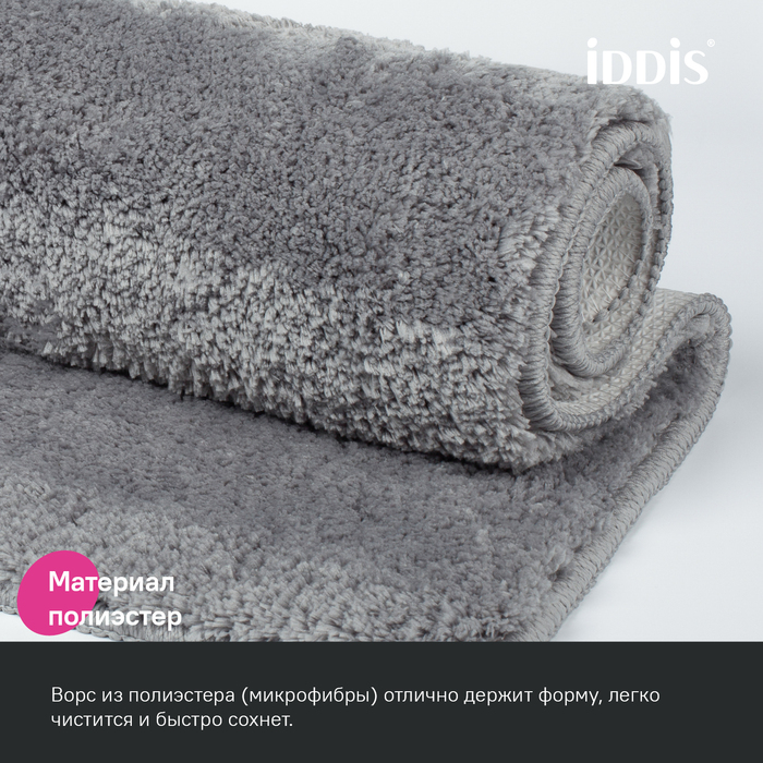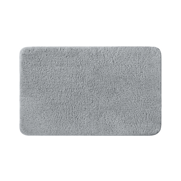 Мягкий коврик для ванной серого цвета с плотным высоким ворсом (2 см), очень приятный на ощупь. Стриженый ворс из микрофибры отлично держит форму, легко чистится и быстро сохнет. Коврик подойдет для ванной и туалета.