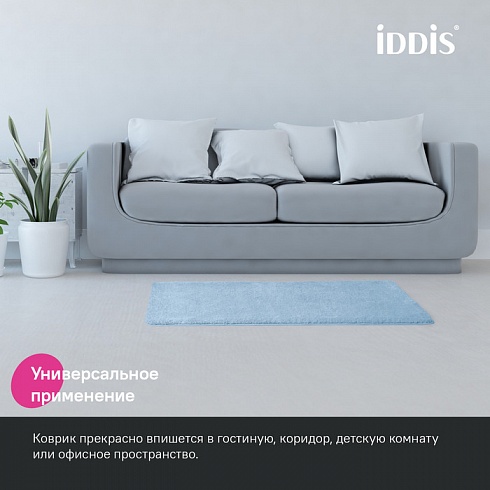 Мягкий коврик для ванной светло-синего цвета с плотным высоким ворсом (2 см), очень приятный на ощупь. Стриженый ворс из микрофибры отлично держит форму, легко чистится и быстро сохнет. Коврик подойдет для ванной и туалета.