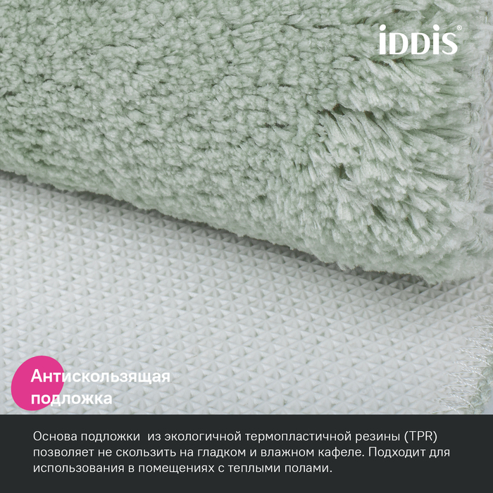• Этот коврик в ванную противоскользящий: основа из экологичной термопластичной резины (TPR) позволяет не скользить на гладком и влажном кафеле. Подходит для использования в помещениях с теплыми полами.