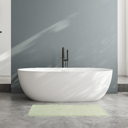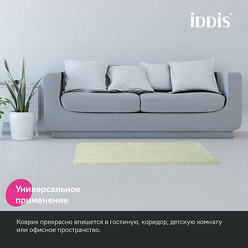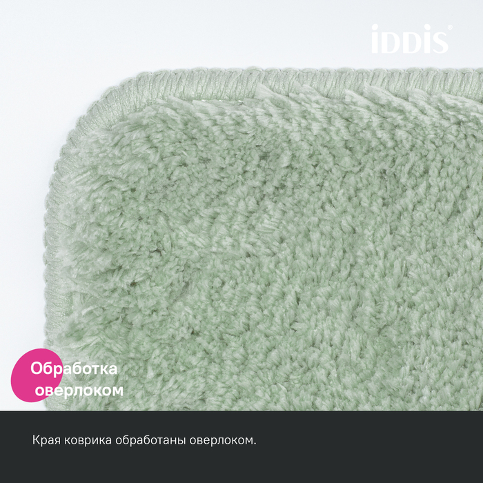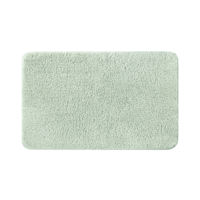 Мягкий коврик для ванной светло-зеленого цвета с плотным высоким ворсом (2 см), очень приятный на ощупь. Стриженый ворс из микрофибры отлично держит форму, легко чистится и быстро сохнет. Коврик подойдет для ванной и туалета.