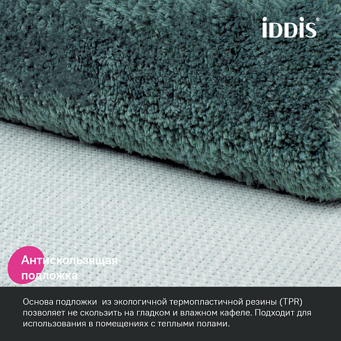 • Этот коврик в ванную противоскользящий: основа из экологичной термопластичной резины (TPR) позволяет не скользить на гладком и влажном кафеле. Подходит для использования в помещениях с теплыми полами.