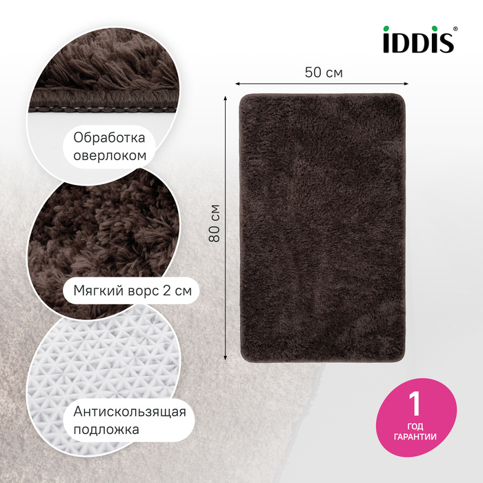 Мягкий коврик для ванной темно-коричневого цвета с плотным высоким ворсом (2 см), очень приятный на ощупь. Стриженый ворс из микрофибры отлично держит форму, легко чистится и быстро сохнет. Коврик подойдет для ванной и туалета.