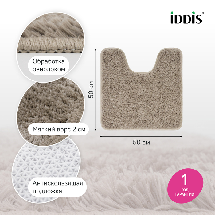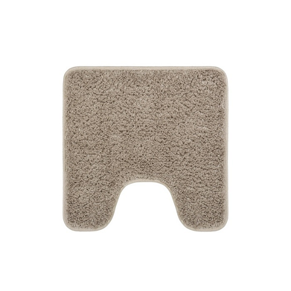 Мягкий коврик для ванной светло-коричневого цвета с плотным высоким ворсом (2 см), очень приятный на ощупь. Стриженый ворс из микрофибры отлично держит форму, легко чистится и быстро сохнет. Коврик имеет вырез под унитаз и предназначен для туалета.