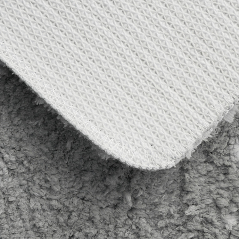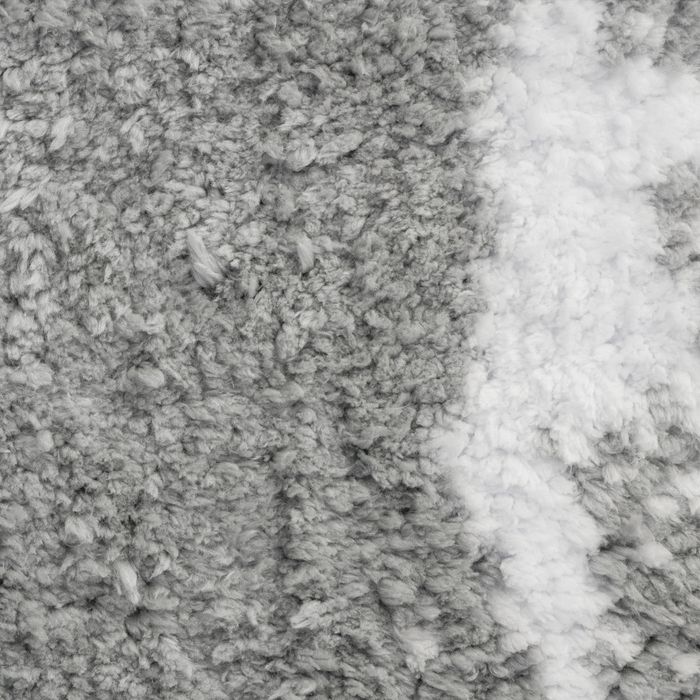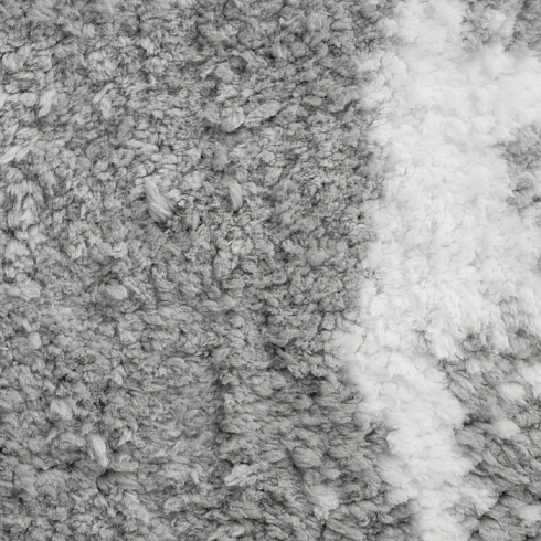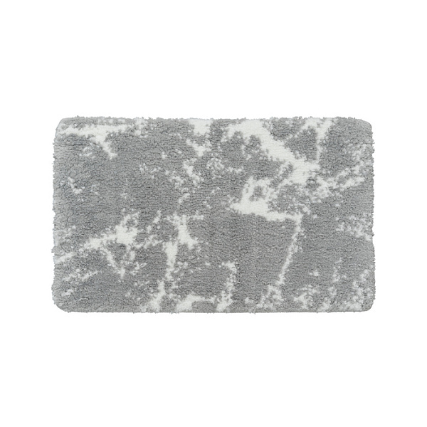 Пушистый коврик для ванной серого цвета с высоким плотным ворсом (2,5 см) с «мраморным» узором, мягкий и очень приятный на ощупь. Ворс из полиэстера отлично держит форму, легко чистится и быстро сохнет.