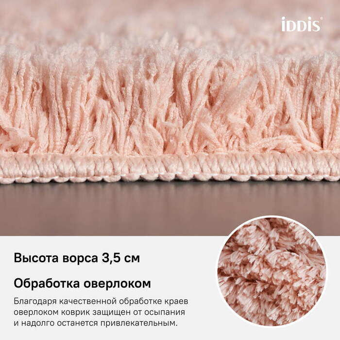 Пушистый коврик для ванной приглушенного кораллового цвета с высоким ворсом (3,5 см), мягкий и очень приятный на ощупь. Ворс из микрофибры отлично держит форму, легко чистится и быстро сохнет. Коврик подойдет для ванной и туалета.