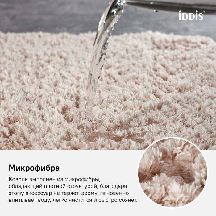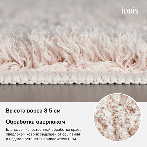 Пушистый коврик для ванной приглушенного розового цвета с высоким ворсом (3,5 см), мягкий и очень приятный на ощупь. Ворс из микрофибры отлично держит форму, легко чистится и быстро сохнет. Коврик подойдет для ванной и туалета.