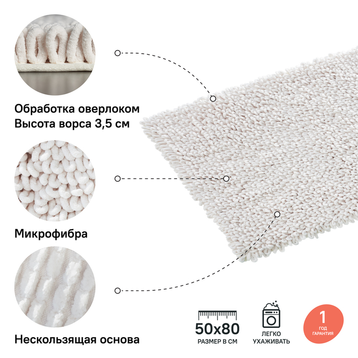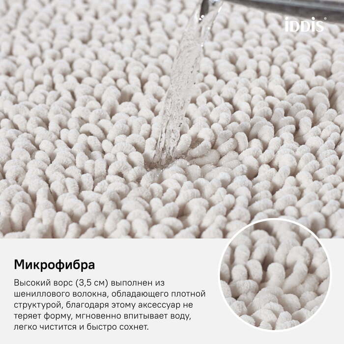 • Этот коврик в ванную противоскользящий: нескользящая основа из экологичного полимерного материала (Hotmelt) не пропускает влагу и не впитывает запахи.