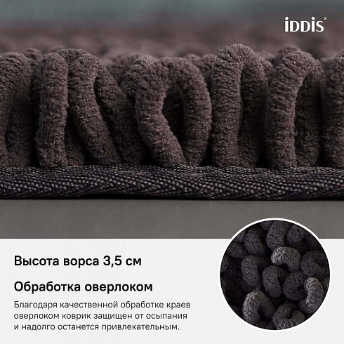 Плюшевый коврик для ванной нежного цвета темного шоколада с очень мягким и приятным на ощупь высоким ворсом (3,5 см) в виде плотных петель. Он отлично сохраняет тепло и держит форму, сохраняя красивый внешний вид. Коврик подойдет для ванной и туалета.