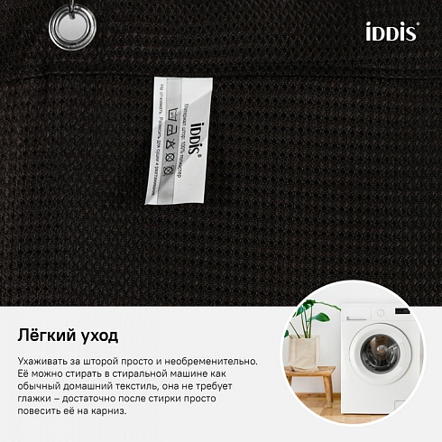 • Легко ухаживать: шторку для ванной комнаты можно стирать в стиральной машине в деликатном режиме и гладить утюгом на минимальной температуре.
