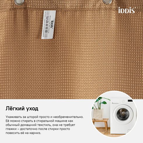 • Легко ухаживать: шторку для ванной комнаты можно стирать в стиральной машине в деликатном режиме и гладить утюгом на минимальной температуре.