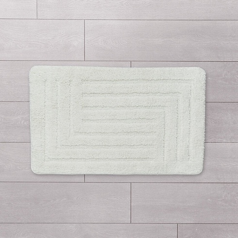 Коврик для ванной белоснежного цвета с плотным фигурным ворсом (1,5 см), мягкий и очень приятный на ощупь. Ворс из микрофибры отлично держит форму, легко чистится и быстро сохнет.