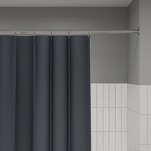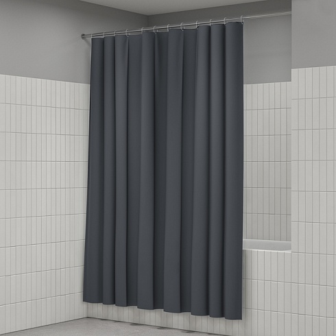 Однотонная непрозрачная штора для ванной графитового цвета. Изготовлена из современного материала PE – мягкого, прочного, приятного на ощупь, экологичного и безвредного для здоровья термопластика.