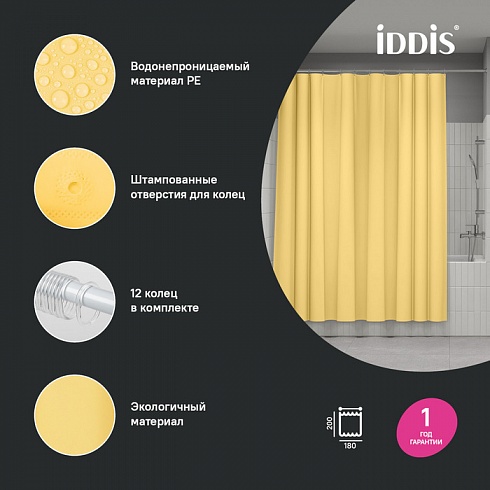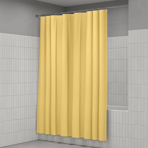 Однотонная непрозрачная штора для ванной солнечного желтого цвета. Изготовлена из современного материала PE – мягкого, прочного, приятного на ощупь, экологичного и безвредного для здоровья термопластика.